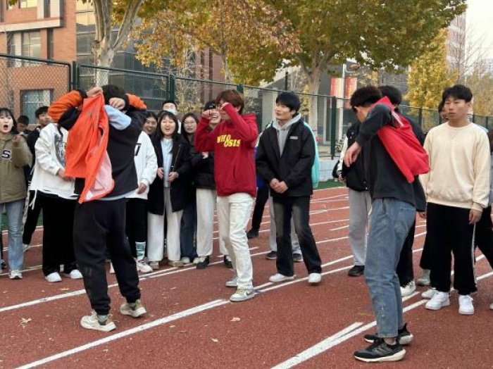 随后,拔河比赛,两人三足,跳绳,背对背夹气球,腿夹球比赛,穿衣服比赛六项活动有序进行。参加活动的同学都充满激情,友谊第一比赛第二,公平、公正、公开,也有不少同学现场报名。
