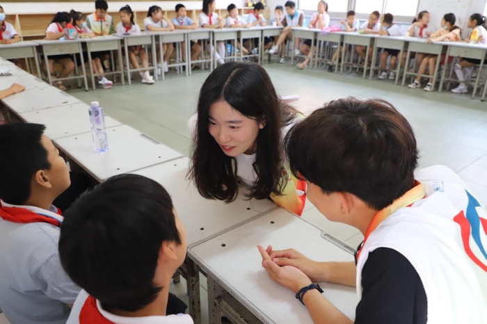 “学生积极心理训练营”模块中,两校共20余名志愿者深入接触、了解学生,在活动期间为学生们开展“情绪”、“感恩”、“注意力”等主题的团体辅导课程,取得良好效果。